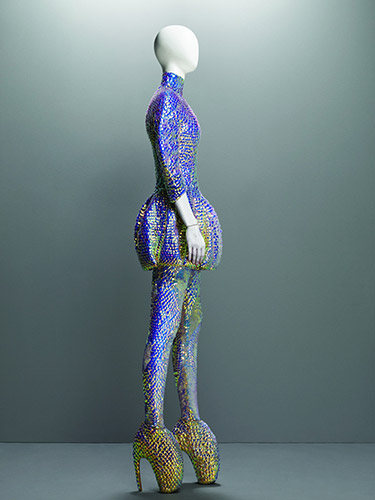 Jellyfish ensemble–spring/summer 2010. Dress/leggings/Armadillo shoes embroidered with metallic/shiny paillettes. Lady Gaga rocked this entire getup in her “Bad Romance” video.