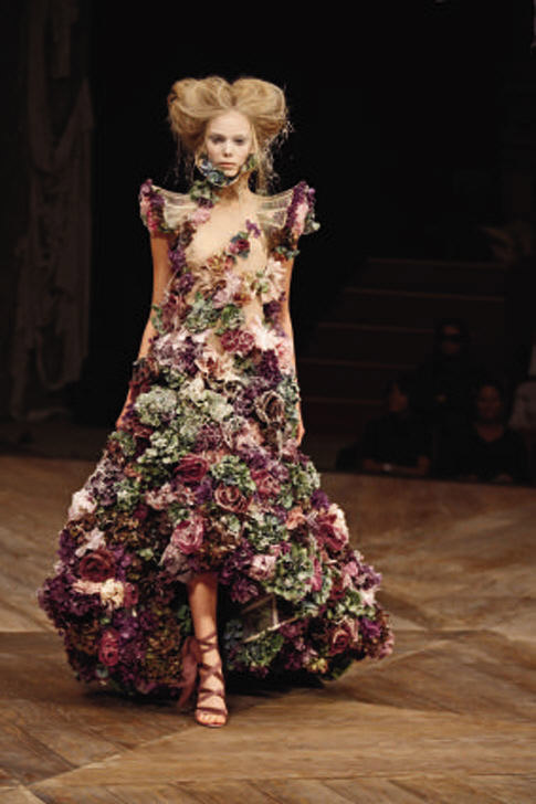 Sarabande dress–spring/summer 2007. Embroidered with fresh flowers and silk flowers.