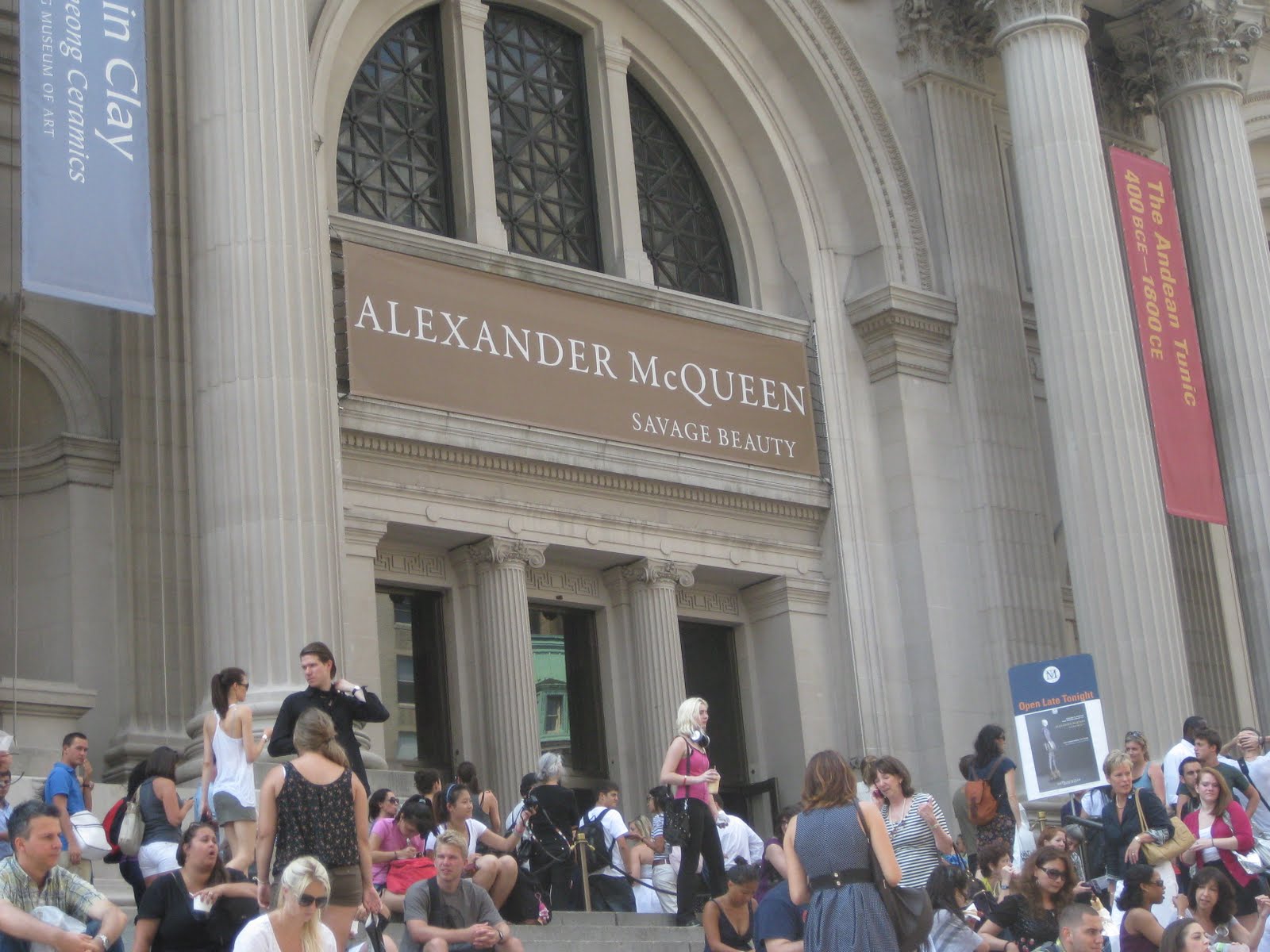 This past Friday, on a somewhat spontaneous trip, my boyfriend and I made our way to NYC for the day to catch the last weekend of the Alexander McQueen exhibit at the Metropolitan Museum of Art. After a few pit stops along the way (photoshoot with the naked cowboy etc) we made it over to the Met around 3:30 and were pretty pumped when we were able to cut the never ending line outside with our temporary membership card (courtesy of the boyfriend’s super cool uncle).