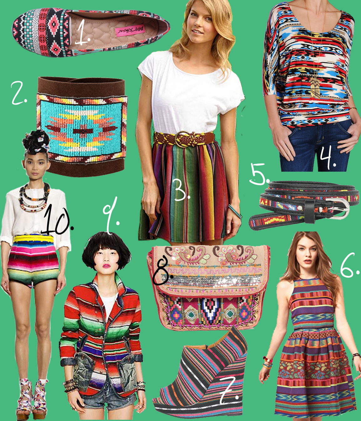 Hola fashionistas! Please excuse my lack of posting. I was spring breaking in Panama City, Florida for six days, but I’m finally back in Delaware (unfortunately). Surprising, I got a lot of inspiration for new posts while chugging sipping, on my never ending margaritas all week. Maybe it was because I wasn’t too far from Mexico, but my current obsession is anything with a Mexican/Mexican blanket print! I fall in love with anything colorful, so these prints are perfect for anyone looking to make a statement. I’ve noticed a lot of these fabrics and prints popping up in retail and commerce stores. Check out mis favoritas below!