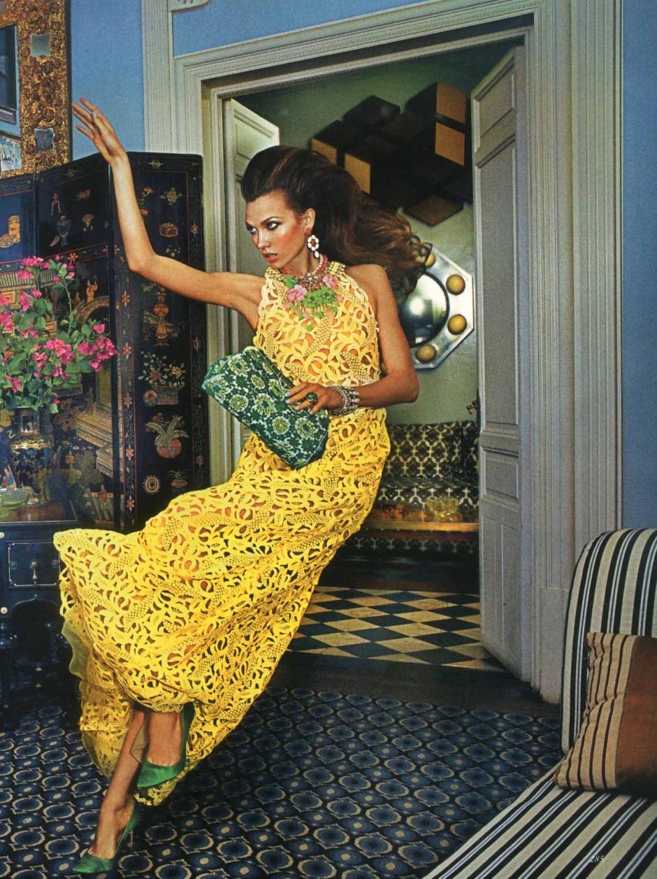 Karlie Kloss makes the 60s housewife look GOOD! The March issue of Vogue features Kloss, photographed by Mario Testino, in an editorial chock full of vintage inspired looks and graceful jumps off and onto couches. I love all the colors and silhouettes in this playful shoot! And who’s gonna teach me how to style my hair like that?
