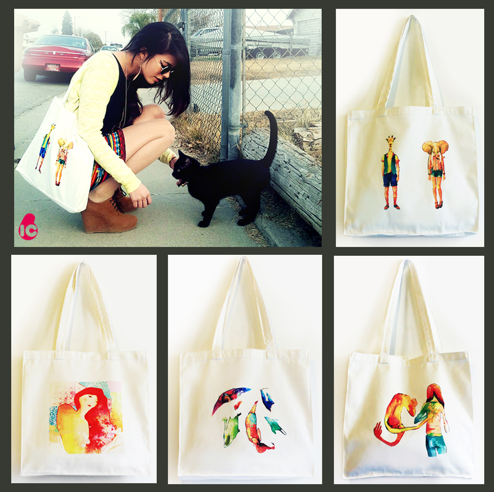Hey everyone! Today I’d like to introduce to you INVERTED COMMAS! Founded in Florence Italy in the fall of 2011, INVERTED COMMAS is a tote bag line featuring unique illustrations by its designer/creative director. Like what you see? Enter here for a chance to win the Giraffe Boy & Elephant Girl bag (my favorite). You can also purchase them on Etsy! Be sure to check out their Tumblr & Twitter pages, too!