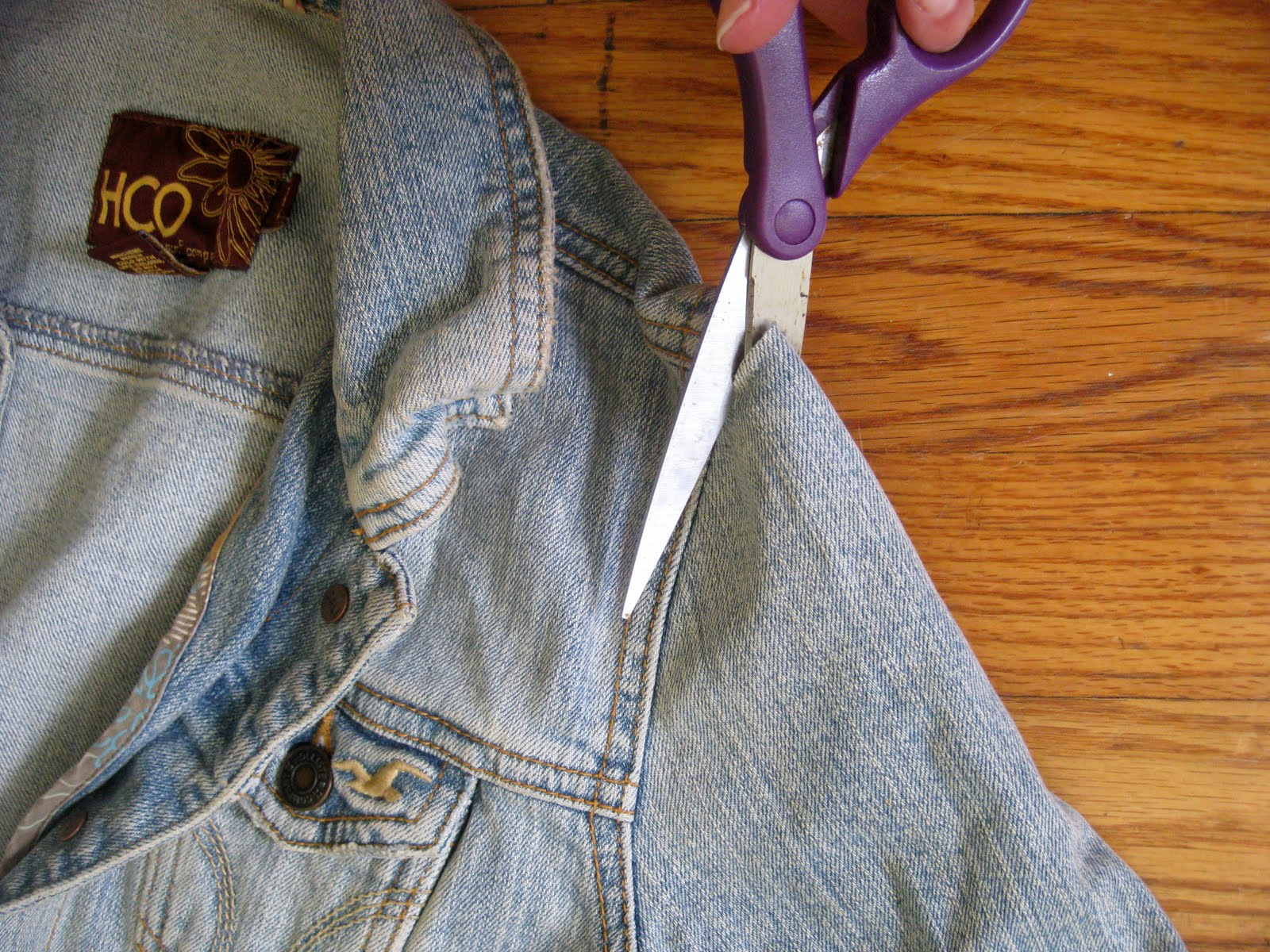 What you’ll need: an old jean jacket and a pair of sharp scissors