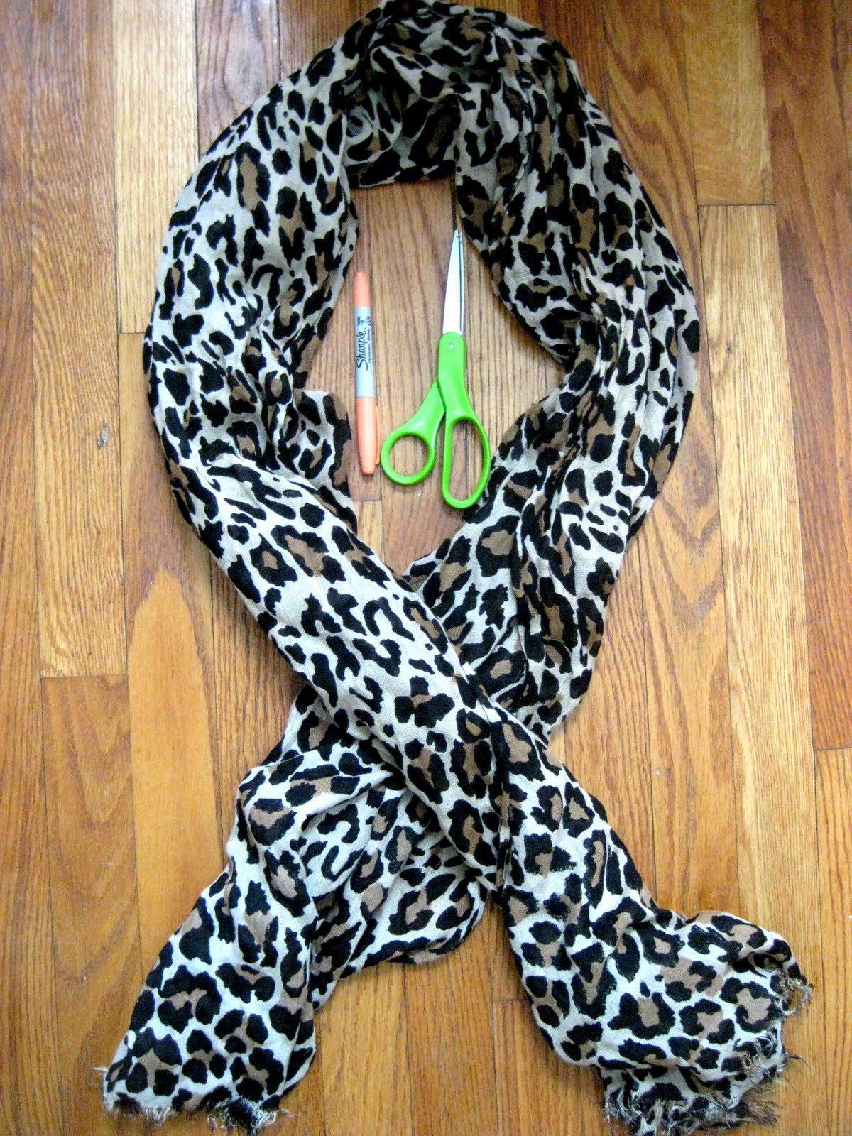 First, place your scarf on either yourself or your dear friend (that you’ve convinced to help you through a bribe of cookies). Don’t forget to stand up straight with your arms at your sides.