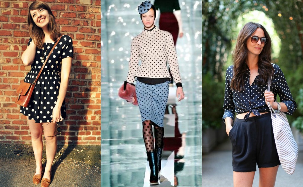 I must say I wasn’t a very big fan of polka dots before chicer versions of them started appearing on the racks, but now I can’t get enough of them! Whether you wear them in your hair or in the form of a pencil skirt, polka dots are a stylish and girly option for any occasion. Of course the “less is more” rule definitely applies for this trend. Just because Marc Jacobs sent models down the runway in head-to-toe polka, doesn’t mean you should. My favorite way to wear the little spots is keeping one item dotty and pairing it solid pieces. If you do opt for the all over dot look, the most flattering polka dots are the smaller ones. Enjoy the polka party!