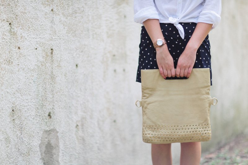 A few months ago I was chosen to be a blogger for the Wanderlust project for the handbag and shoe line, Sienna Ray, and couldn’t be more delighted. After its much anticipated arrival, the Mimosa Makayla bag landed on my door step in little old Delaware after many other trips around the country to the other selected bloggers. Needless to say, it was love at first sight. I love that the bag can be worn with or without the strap for maximum versatility, and the color is gorgeous! I decided to test out the Makayla with two different outfits: casual and a little dressed up. My casual outfit consisted of a