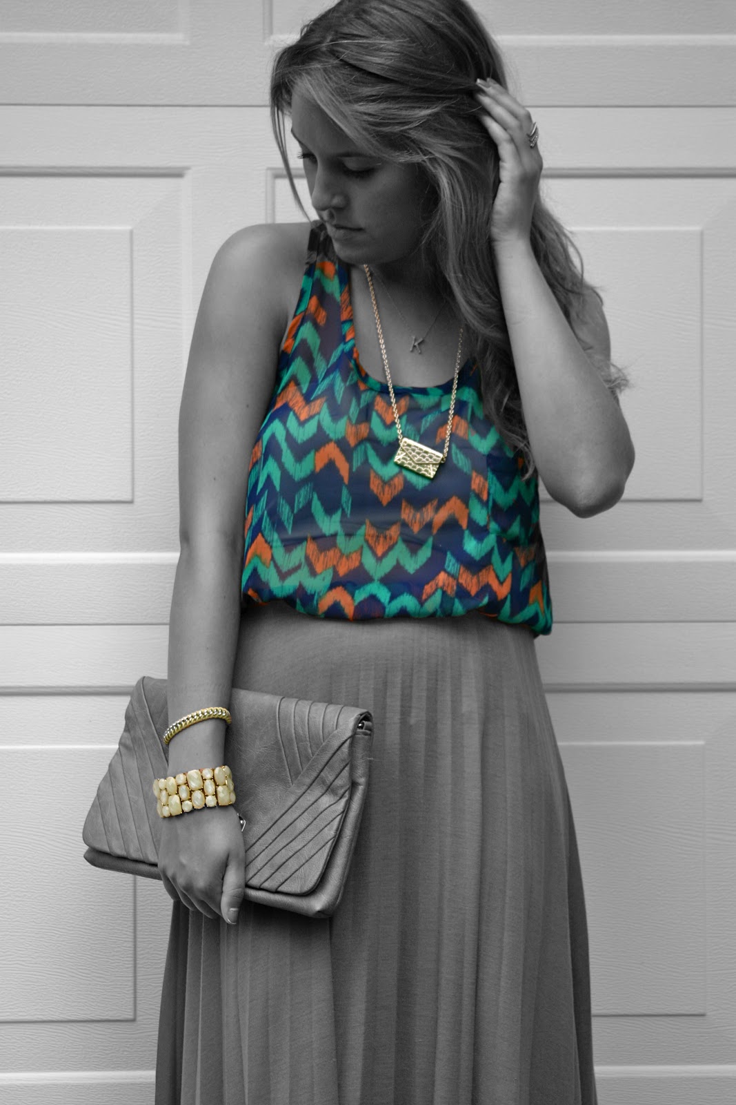 Chevron is one of those prints that just doesn’t go away and I’m not complaining! I consider chevron a classic in my book, right up there with leopard print, florals and blazers. These pretty zig zags are really versatile because they can work