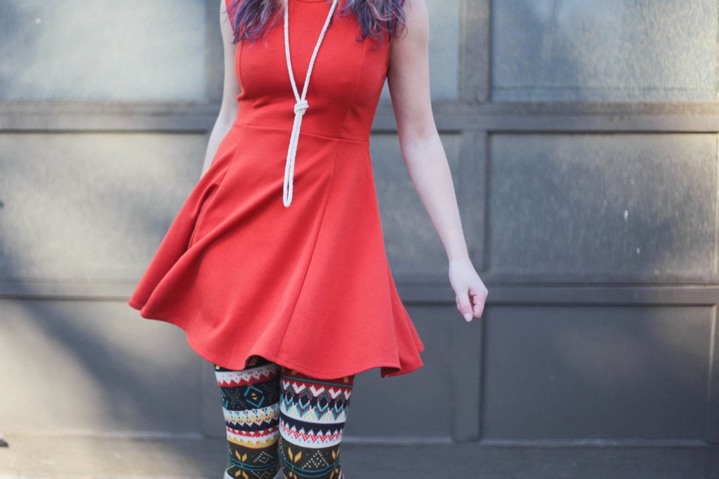 Ok, so tights might not be the warmest option, but they add a punch of fun to any outfit and come in so many different options. (Think floral, lace, polka dot and striped!) In terms of leggings, I lean towards cable knit, printed, and solid cotton because they have equal parts warmth and style! Scroll down to check out how I styled mine!