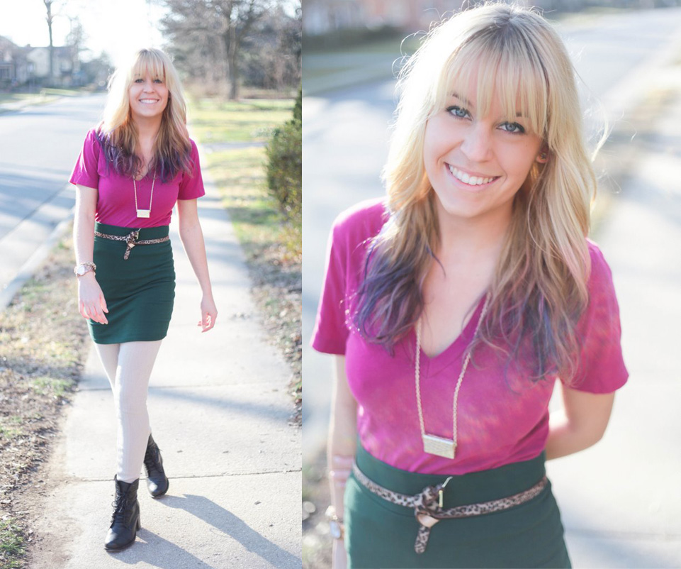 Is anyone else sick of wearing jeans tucked into their knee-high boots? This uniform, that I’ve been sporting due to lack of time to get dressed in the morning, has become such a bore. So, I’ve made the executive decision to get my lazy ass up 15 minutes earlier from now on to put together a more thoughtful outfit. That being said, it’s kind of hard to put together this awesome outfit in February without freezing my butt off. My solution? Leggings and tights!